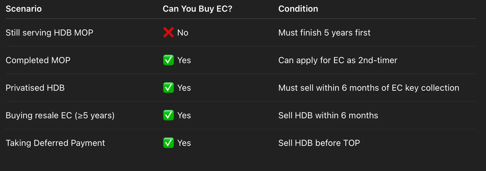 So, can you buy an EC if you own an HDB?Yes — but only after completing your MOP and with a clear plan to sell your HDB before or shortly after EC completion.Buying an EC is a major upgrade step that lets you enjoy private-style living at a subsidised entry price — but timing and eligibility are key.